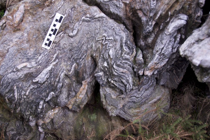 Os afloramentos estão inseridos na área do Geoparque Arouca (Sá et al., 2008) e considerados de interesse geológico por estes e outros autores (Medina et al., 2005, Valle Aguado et al., 2006). Ao longo dum curto percurso a pé são observados vários tipos de estruturas nos metassedimentos do Complexo Xisto-Grauváquico que testemunham o carácter polifísico da deformação varisca. A presença de litologias diferenciadas no seio dos micaxistos torna muito evidentes as numerosas dobras que, a várias escalas, ocorrem neste local. Os afloramentos são apresentam muito boa exposição. Num dos afloramentos observam-se dobras redobradas, descrevendo um padrão de interferência designado pelos estruturalistas de “tipo-3” (Fig. 1). A última geração de dobras é atribuída à 3ª fase de deformação varisca (Valle Aguado, 1992).